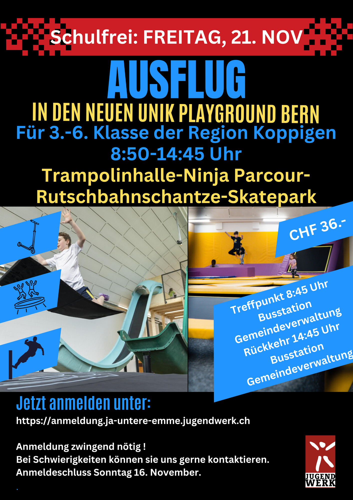 Hast du Lust am Schulfreien Tag in den neuen unik Playground in Bern zu gehen?